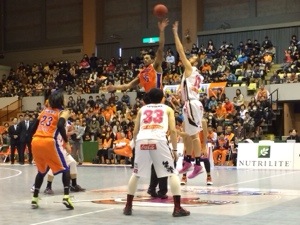第二クオーターに入ると秋田の外国人選手がテクニカル取られるなどファールトラブルで、オンザコート2になり、新潟ペースで逆転!