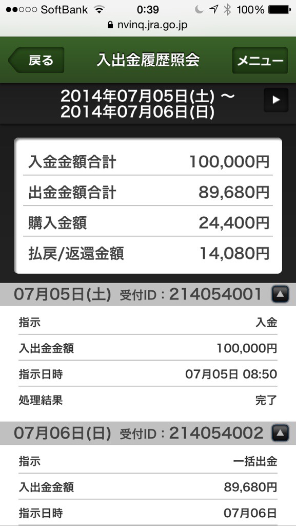 JRA資産運用7月5、6日 利殖支援ソフト諭吉くん X Facebook はてブ Pocket LINE コピー 2014.07.062014.08.16 利殖支援ソフト‘RuDolf’を使用し資産運用してます。 この土、日曜は10320円の損失でした。 事前に統計を取り、充分なシミュレーションにより自分なりの馬券購入方法を設定し自動購入します。