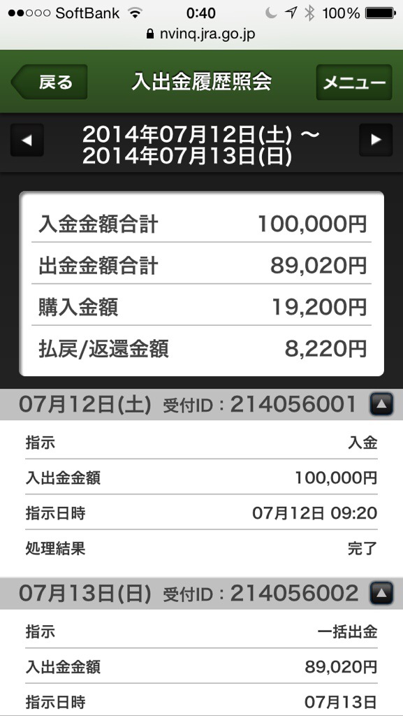 JRA資産運用7月12、13日 利殖支援ソフト諭吉くん X Facebook はてブ Pocket LINE コピー 2014.07.132014.08.16 利殖支援ソフト‘RuDolf’を使用し資産運用してます。 この土、日曜は10980円の損失でした。 事前に統計を取り、充分なシミュレーションにより自分なりの馬券購入方法を設定し自動購入します。