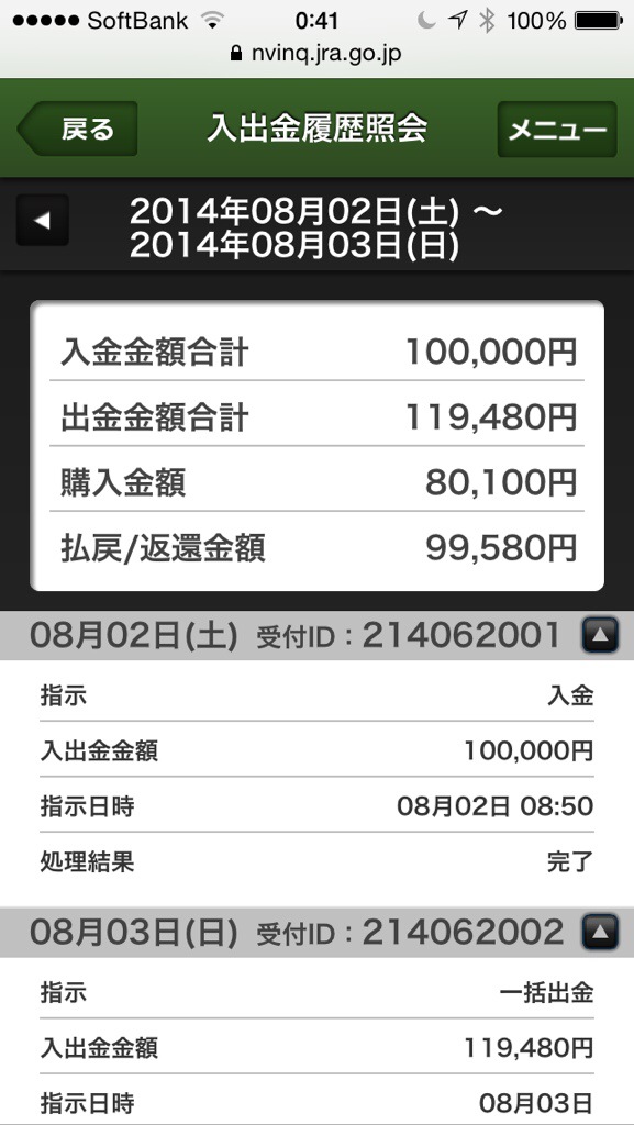 JRA資産運用8月2、3日 利殖支援ソフト諭吉くん X Facebook はてブ Pocket LINE コピー 2014.08.032014.08.16 利殖支援ソフト‘RuDolf’を使用し資産運用してます。 この土、日曜は19480円の利益でした。 事前に統計を取り、充分なシミュレーションにより自分なりの馬券購入方法を設定し自動購入します。