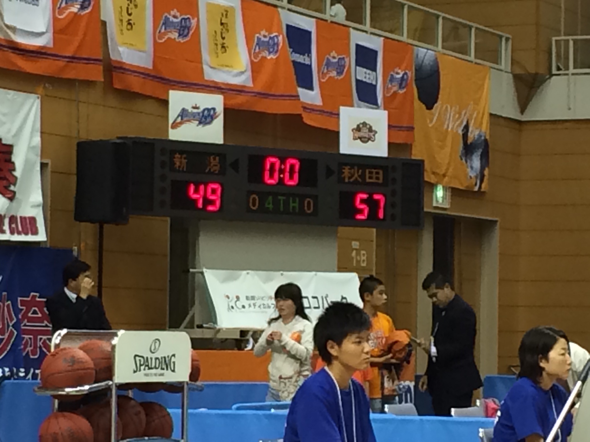 第一クオーターお互いに慎重にプレーするも、新潟の方がシュート確率良く大量リードする。しかし秋田もハードディフェンスから得点を重ね縮める