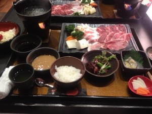 私的にはメインの昼食、“風林火山 響の里”甲州ワインビーフと富士桜ポーク山菜ブランド食べくらべしゃぶしゃぶ、まあまあ美味しかったですが、時間が無くせわしかった(^_^;)太鼓ショーを愉しむ余裕も無かった!失礼しました。